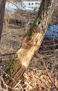 После зимнего затишья в Митинском парке проснулись бобры и уже начали активно грызть деревья.