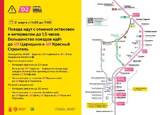 ❗️Завтра (21 марта) с 14:00 до 17:00 на Курском направлении МЦД-2 интервалы движения поездов будут увеличены до 1,5 часов